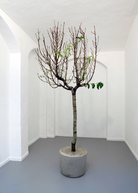 From Rob Pruittʼs ʻorganicʼ sculpture in which poured concrete replaces the soil in a plantʼs pot, suddenly interrupting its natural life once hardened, to Lara Favarettoʼs work where on a small concrete wall gets eternally fixed a very familiar gesture like looking out the window leaning on oneʼs elbows.
