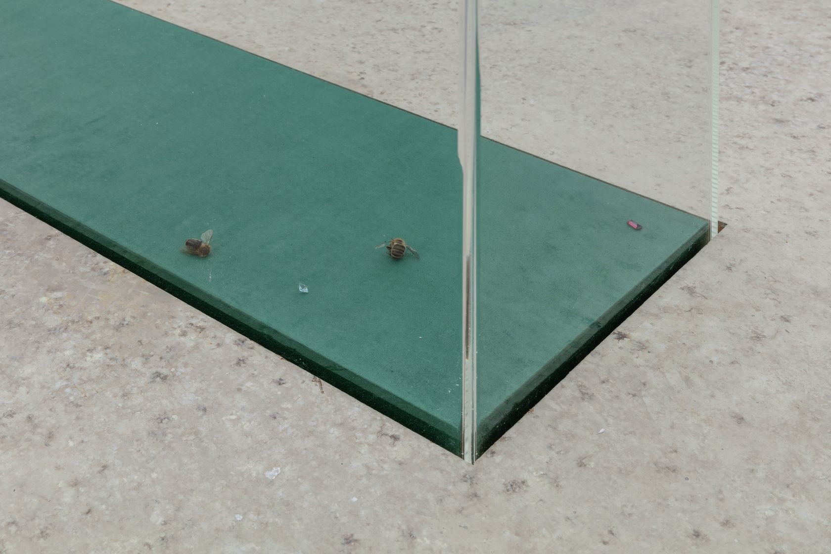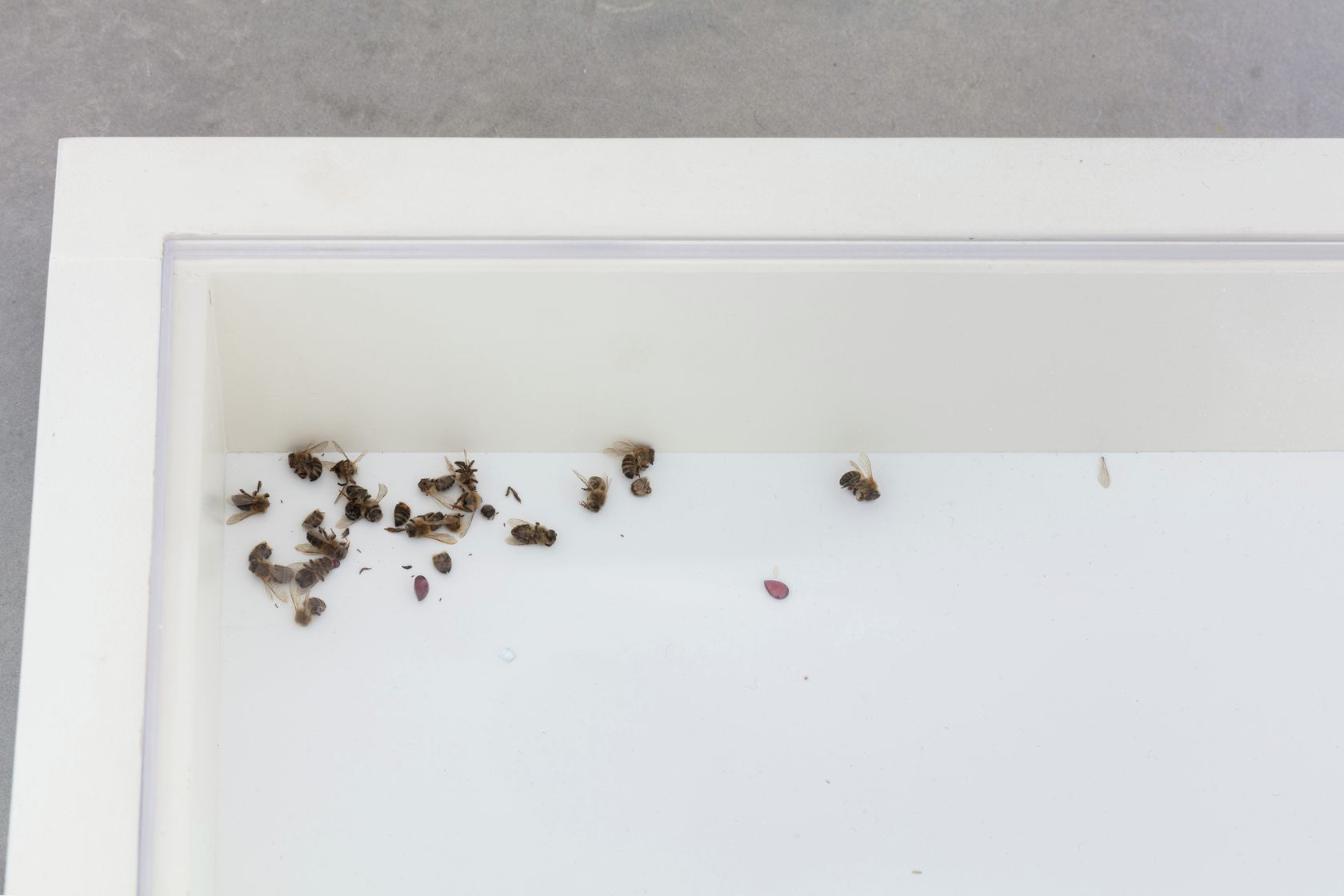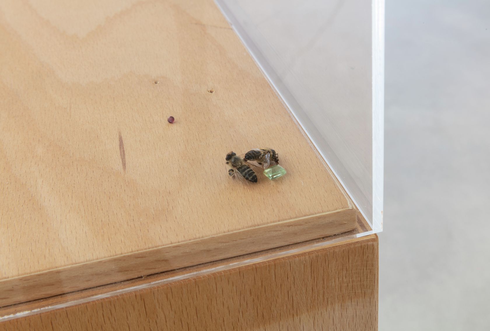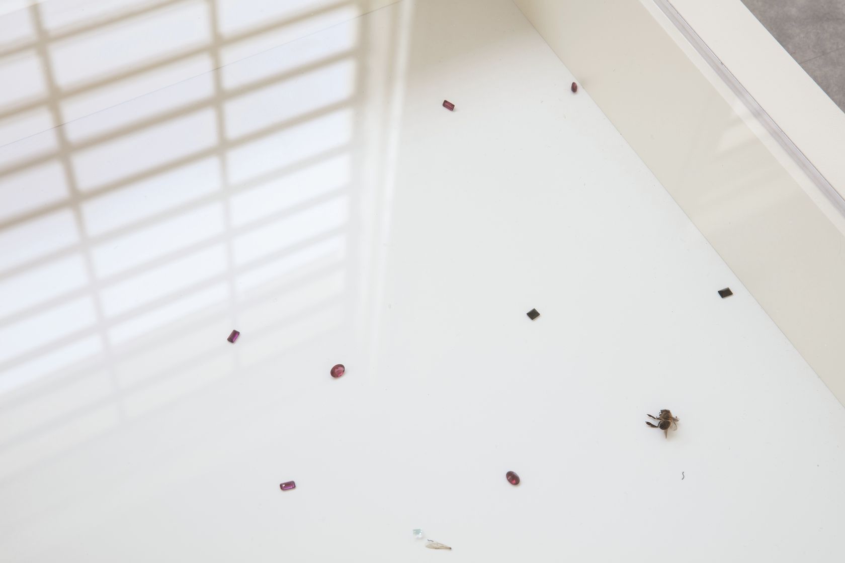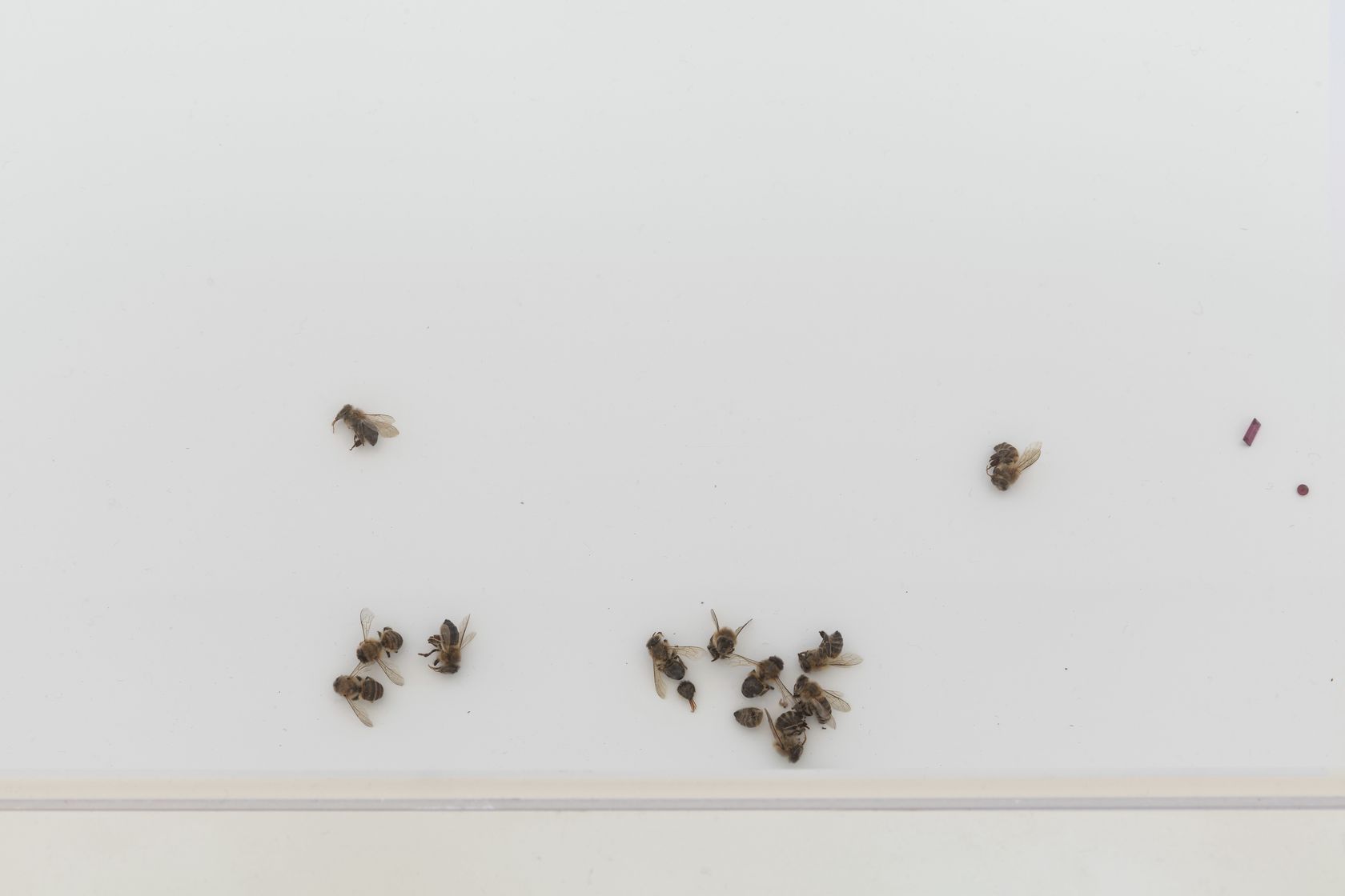 Dodge definisce l’essenza del suo lavoro come qualcosa che va "di pari passo con quanto accade di già". Per le sue nuove sculture l’artista utilizza vetrine e plinti di diversi Musei per accogliere nuove costellazioni di api morte, gemme e natron.
