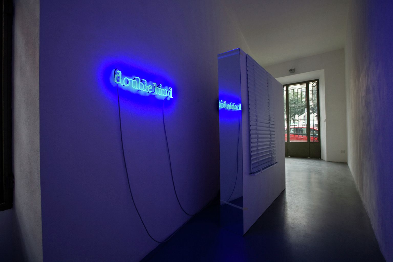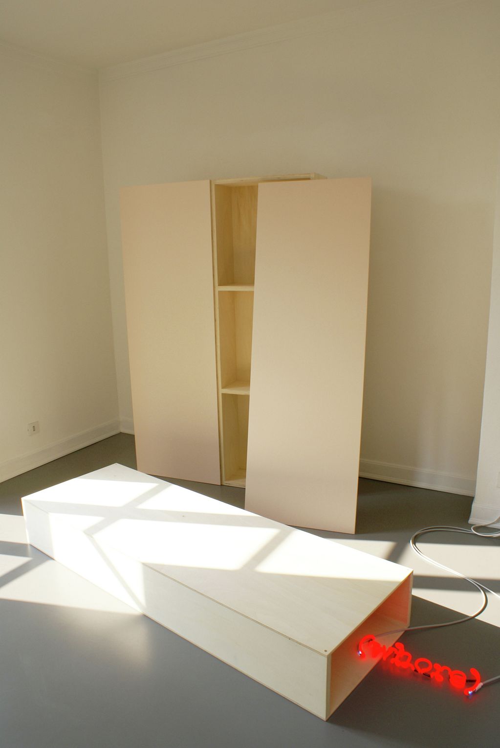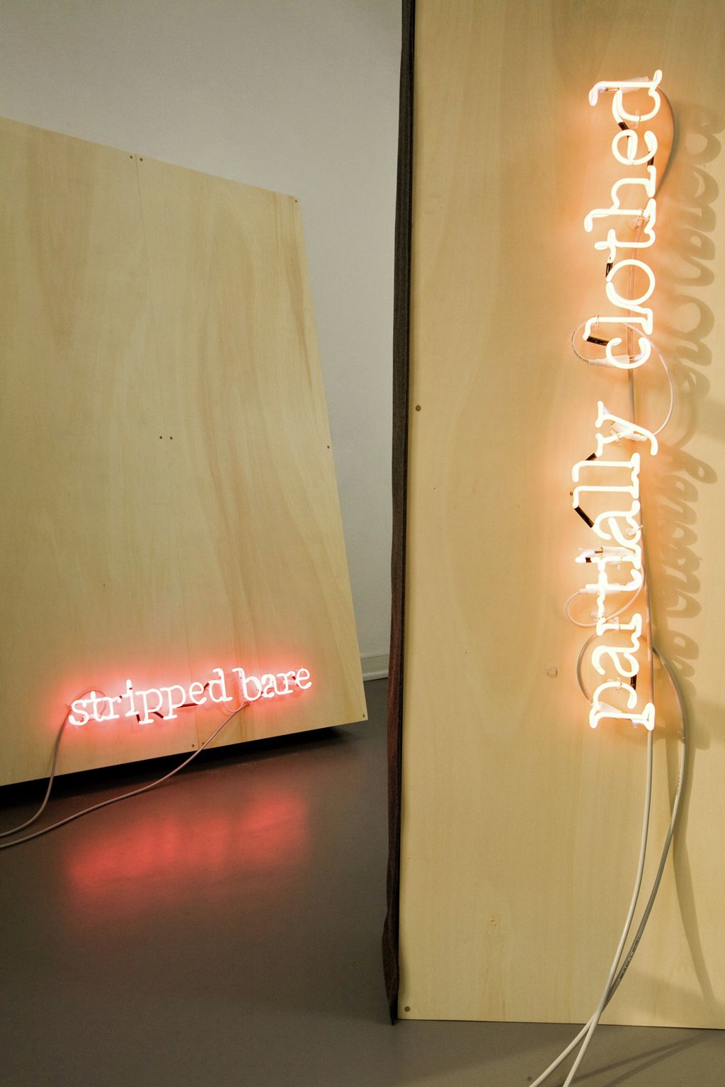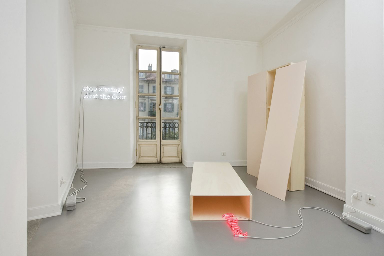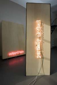 Queste forme costruite sembrano grandi quadri, nei quali è amplificata la qualità tridimensionale scultorea. Brevi testi realizzati al neon sono agganciati alle strutture come elementi di connessione e disconnessione delle parti che le compongono.