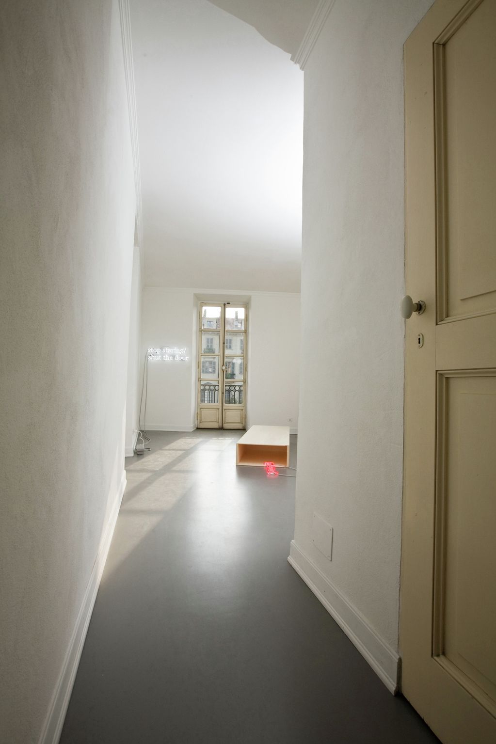 Le opere si riflettono e si completano con l'interno della Fetta di Polenta, che viene, in questo caso, considerata come 'oggetto', per la sua forma e presenza all'esterno, per la sua relazione con il contesto urbano, in modo che la mostra si riveli attraverso le finestre dei vari piani come una sorta di 'peep show', una seduzione che attrae il visitatore.