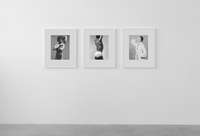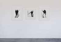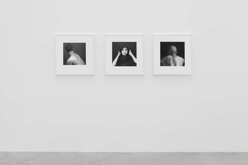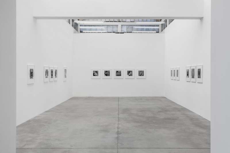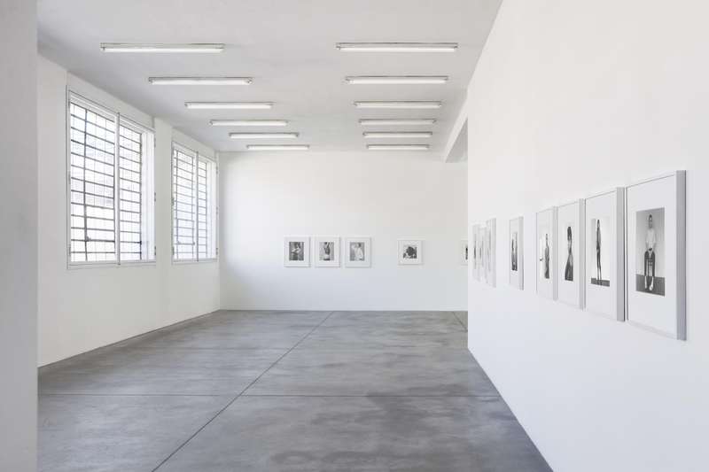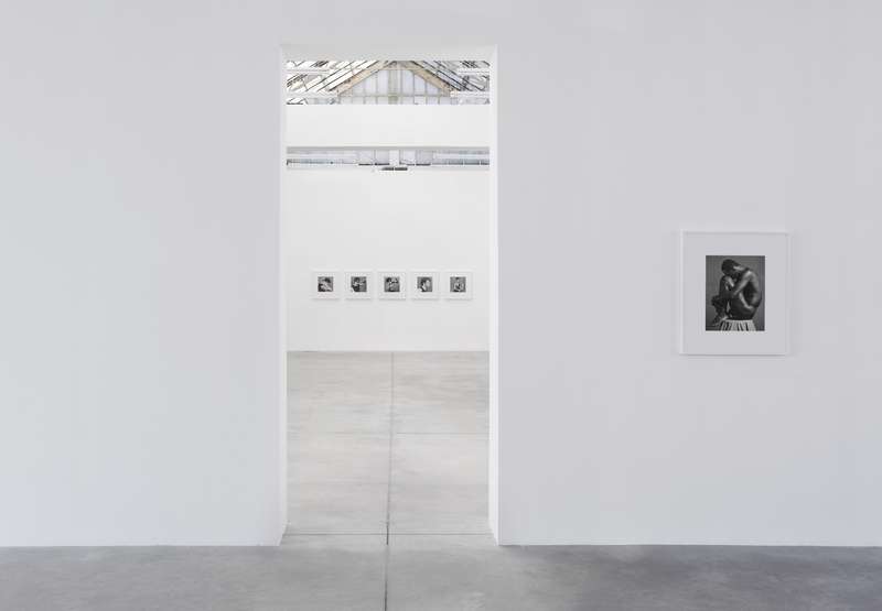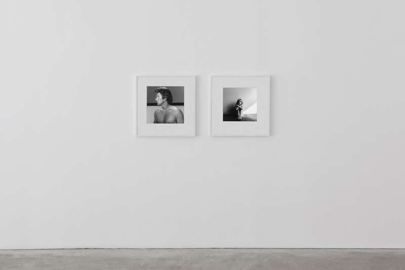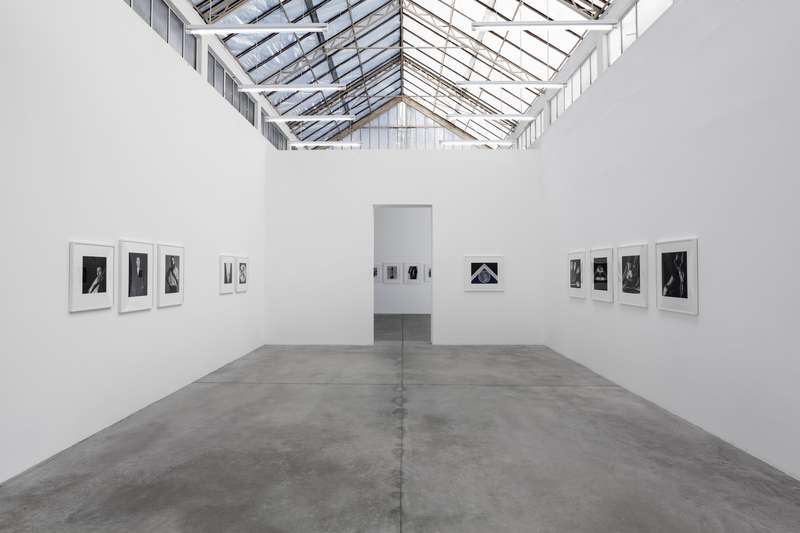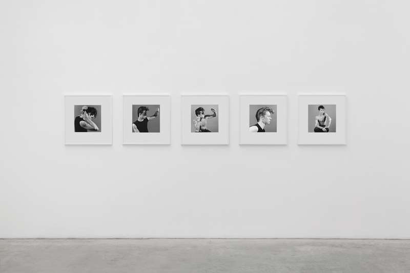 Per contrasto a seguire, delle immagini degli anni ’80 completamente costruite in studio, corpi femminili senza testa sospesi su un fondo bianco uniforme, i contorni morbidi e soffusi, nell’esaltazione edonistica della perfezione e della cura del corpo tipica di quegli anni, nel culto della palestra non come luogo in cui si formano gli atleti ma in cui invece si scolpiscono i muscoli. Una lunga sequenza modulata di opere giocate sulla gamma dei grigi, meno contrastata, permette di spaziare in molte delle direzioni di ricerca dell’artista: sensualità, sesso, movimento, torsione, ieraticità nella posa e ricerca di espressività.